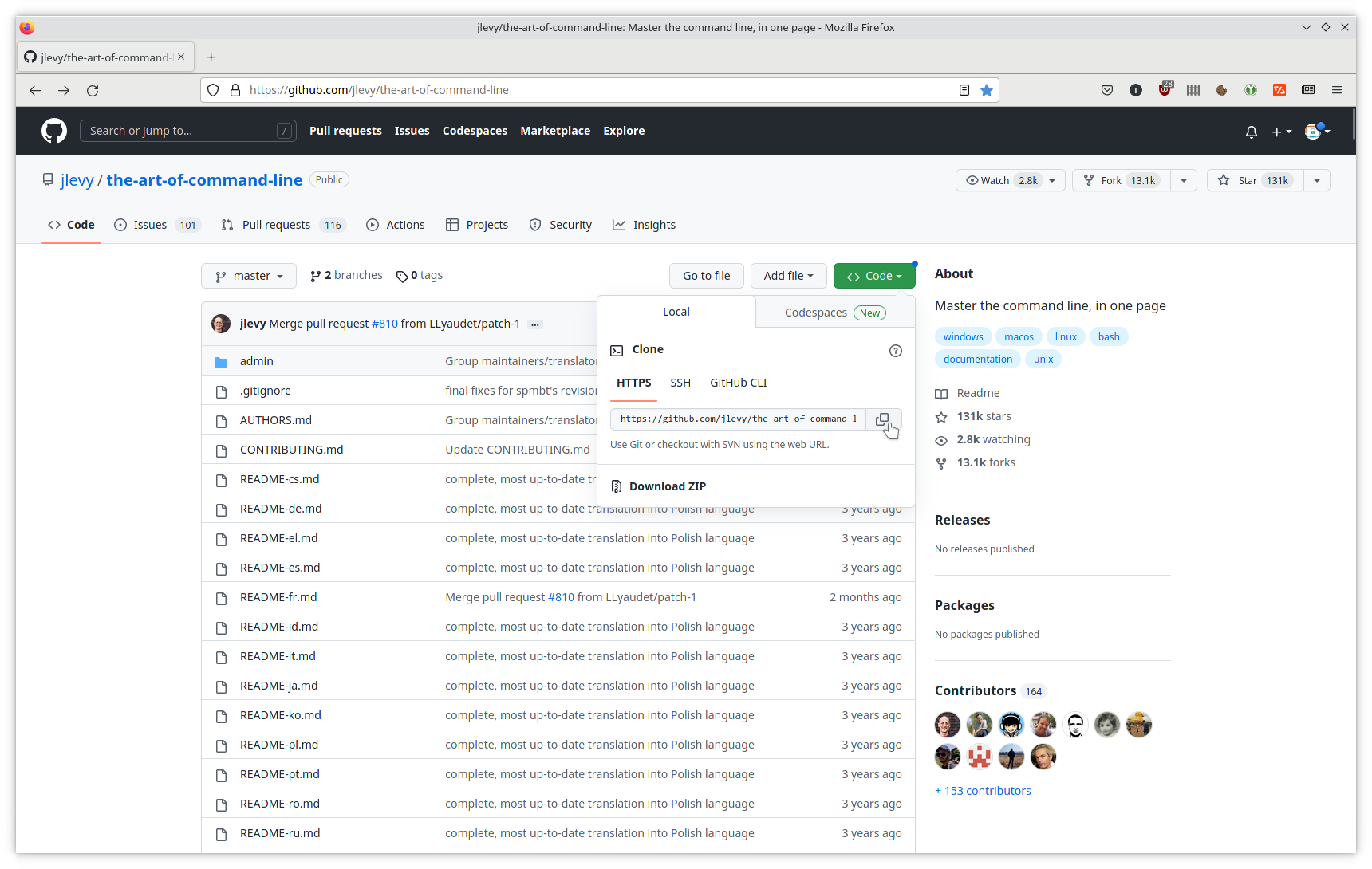 $ git clone https://github.com/jlevy/the-art-of-command-line.git