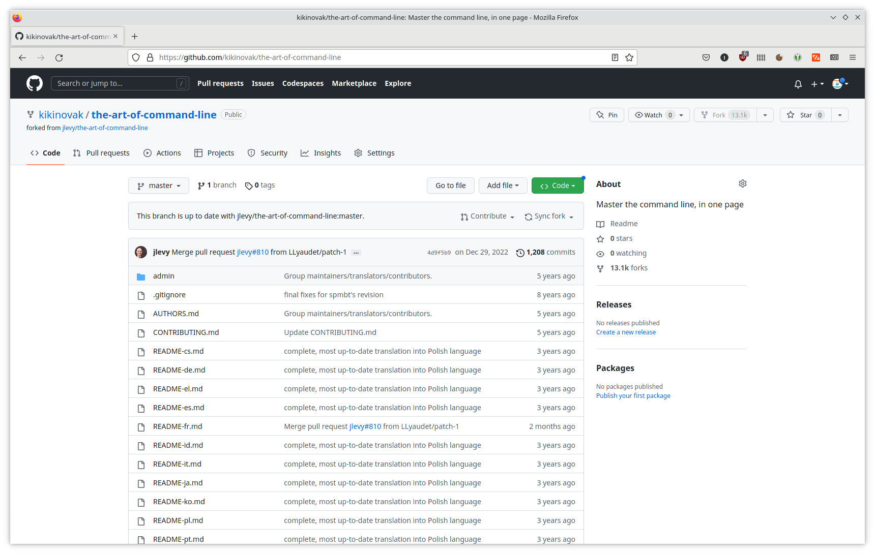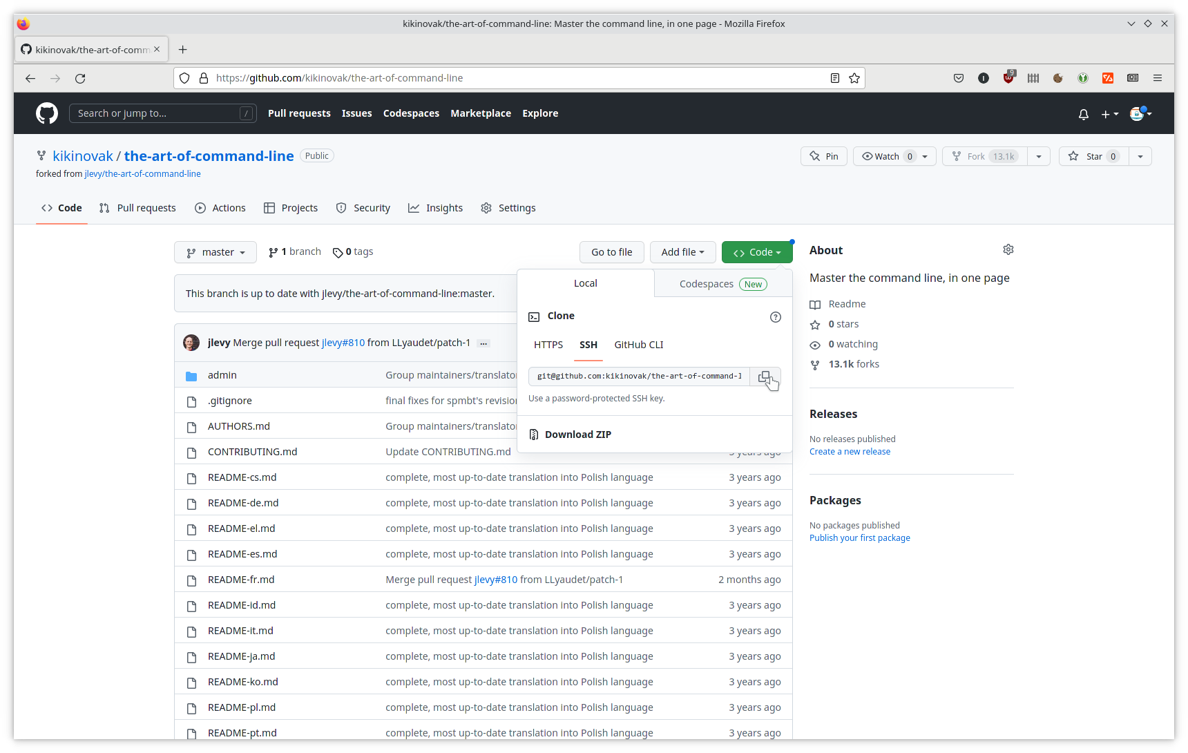 $ git clone git@github.com:kikinovak/the-art-of-command-line.git