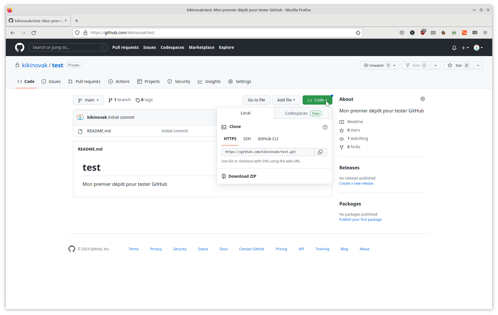 $ git clone https://github.com/kikinovak/test.git