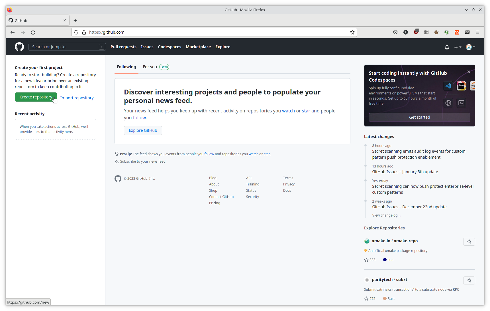 Cliquez sur Create repository.